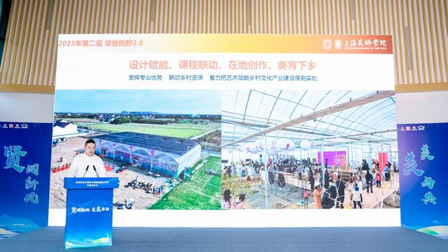 上海大学上海美术学院设计系教师葛天卿分享了“摩登田野”项目与乡村共融生长两年多来的点滴。2022年初,葛天卿带领团队在南桥镇江海村,成功举办了首届“新海派乡村美育展”。展览将艺术与设计植入这片土地,让江海村变成了一个融合乡村风貌、振兴活力与艺术底蕴的新天地,用新形式丰富村民们的精神文化生活。