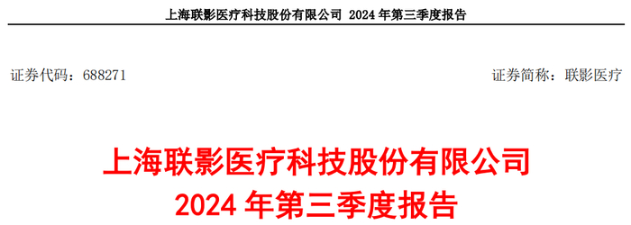 10月30日晚,联影医疗发布2024年第三季度报告,营收、净利均不同程度下滑。