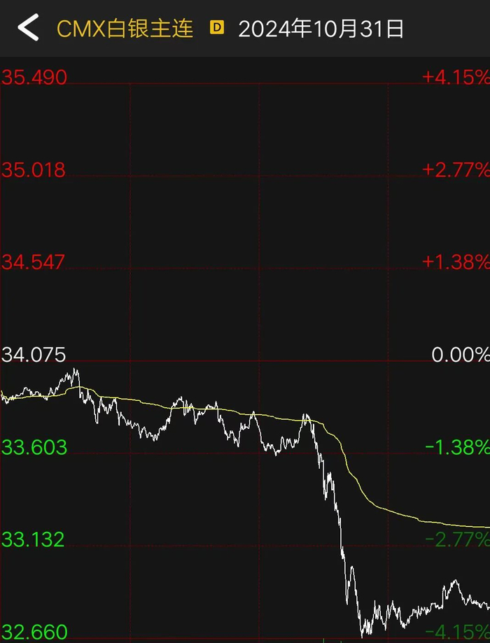 金瑞期货贵金属研究员吴梓杰认为,白银期货大跌主要是受到商品市场普遍偏弱的影响,美债收益率高位施压,也给商品价格形成了一定的压力。前期受到“特朗普交易”的利多支撑,白银盘面出现了一轮明显的上涨。“而当前临近美国非农等数据和11月美国大选结果公布,市场波动明显增加,白银面临一定的获利了结抛压影响,同时金价涨势更为迅猛,白银还受到做多金银比策略的影响。”