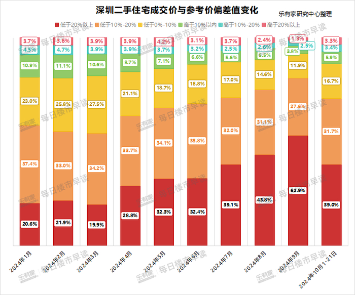 从上图可以看到,10月份低于参考价成交的比例仍高达87.4%。