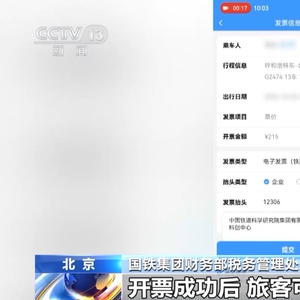 国铁集团财务部税务管理处处长 赵弇南:旅客登录12306首页,点击“电子发票”功能按钮后,输入购买方名称、统一社会信用代码等信息后,系统将据实开具电子发票,并向税务部门上传电子发票的数据文件。开票成功后,旅客可以通过铁路12306或个人所得税App查询、下载电子发票。