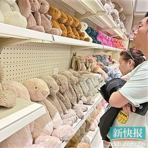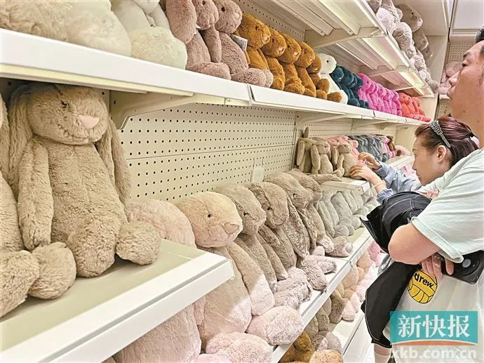 有消费者发现,在广州也能买到Jellycat。记者走访发现,广州新开设的是一家代理店,虽然无法提供“过家家式”体验,但依然难挡消费者购买热情。这个本为婴幼儿设计的玩具品牌,近年来成为了成年人的“心头好”,去年该品牌的收入超18亿元人民币,毛利率更是超60%。