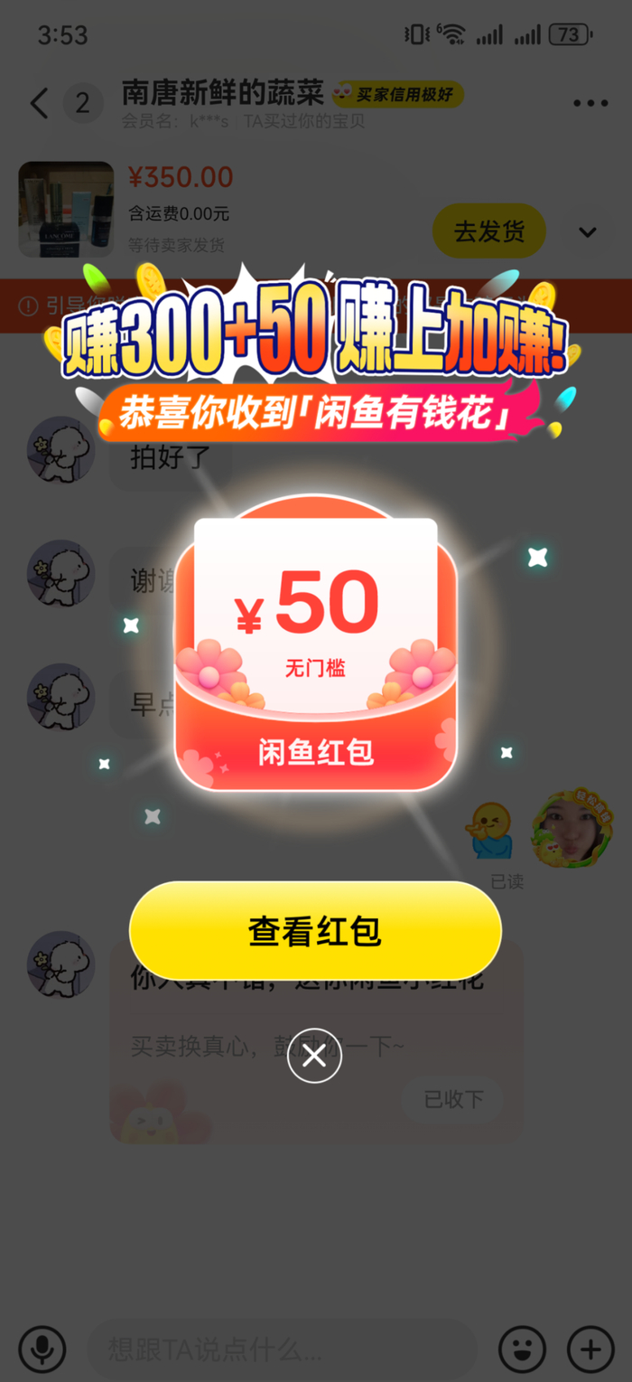 10 月 31 号到 11 月 11 号,站内搜索 “ 狂赚红包 ”,最高可得 1111 元红包,卖出单笔满 300 元及以上,就有机会得 50 元红包。