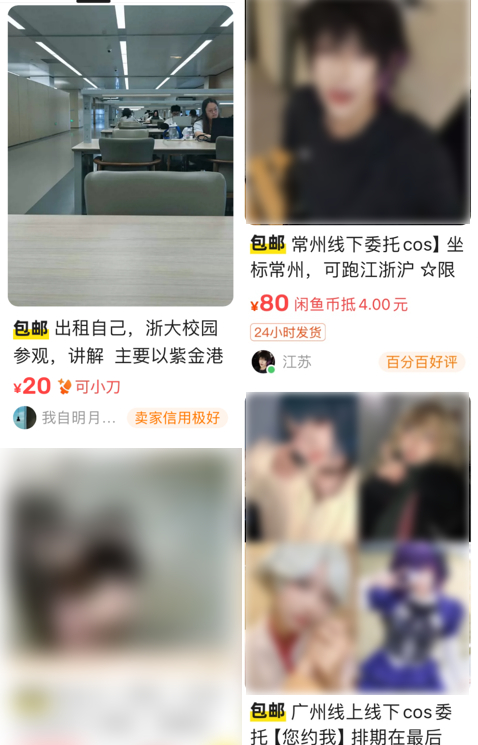 类似的副业青年们,也不止一次提到闲鱼的贴合感,“ 我是上门喂猫,( 闲鱼 )上精准的同城距离能让我知道大概跟人隔多远 ”,“ 都是个性化、定制化的服务,非标品,没法走电商平台,但如果发社交平台,又要担心交易安全,闲鱼担保、信任体系也很完善 ”。