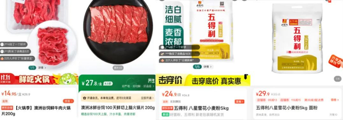 5公斤的五得利八星面粉,小象超市卖29.9元,京东七鲜降到了24.9元;