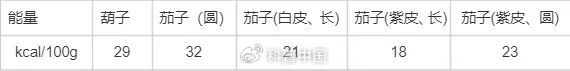 每 100g 的茄子,热量在 18~32kcal 不等,比大多数蔬菜都要低。不同品种的茄子热量还是有些差距,其中长的紫茄子热量最低,仅为 18kcal/100g。