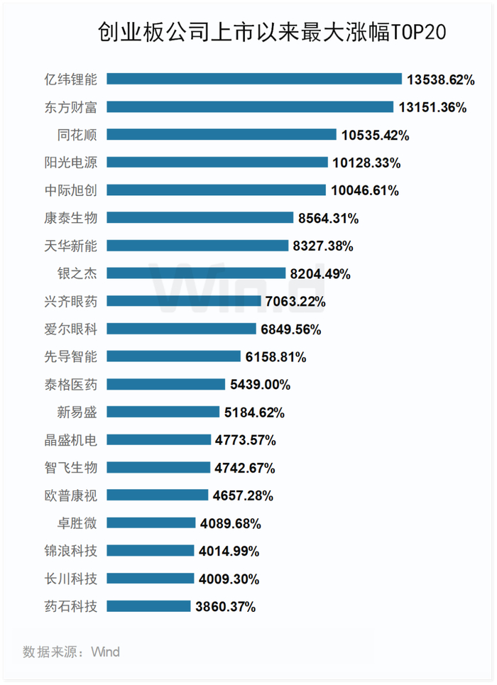 15年间,创业板产生了众多大牛股,自上市以来至今,创业板中个股最高涨幅超过10倍有243只,占比超过15%。