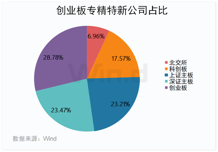 创业板专精特新企业多,Wind数据显示,创业板专精特新企业共有434家,占比达28.78%,位居A股板块第一,高于北交所105家、科创板265家、上证主板350家和深证主板354家。