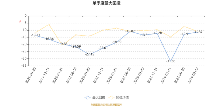 截至10月31日,基金近三年最大回撤为54.74%,同类可比基金排名17/126。其中,单季度最大回撤出现在2024年一季度,为31.85%。