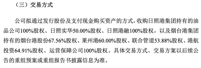 截至2024年6月30日,山东港持有青岛港的股份为35.22亿股,占总股本的54.26%,为青岛港的控股股东;此次标的公司油品公司、日照实华、联合管道、港源管道为山东港直接控股的烟台港和日照港下控股公司。