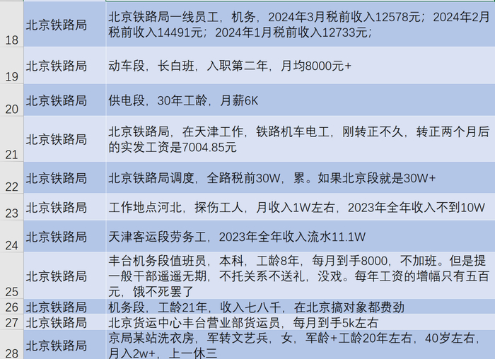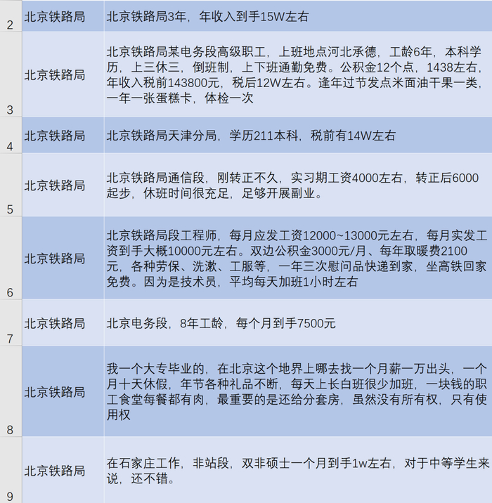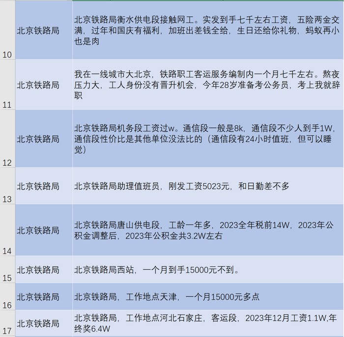 北京铁路局员工工资收入一览表,网友说:也不高啊,挺低的