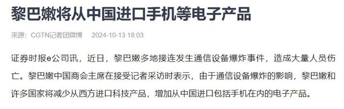 这场全球瞩目的黎巴嫩通讯设备爆炸事件,不仅振动了世界,更悄然间引发了中东电子产品市场的深刻变革。同样被震动的还有中国电子产业与大A。