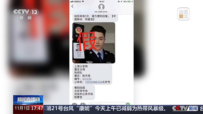 当受害人接通电话后,诈骗分子就会利用相应话术实施诈骗,在一些冒充公检法的诈骗案件中,诈骗分子还会发送“警官证”“逮捕令”等假证件假公文实施恐吓,诱导受害人上当,最终骗取钱财。