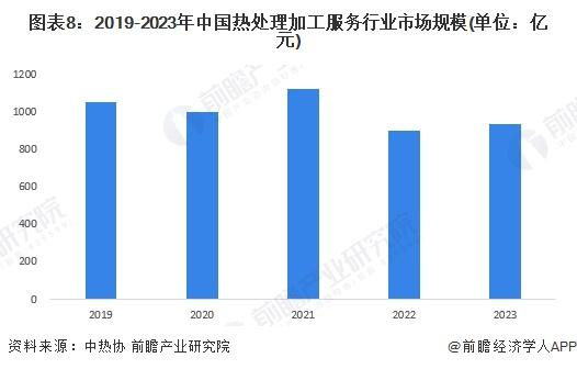 结合中热协发布的热处理经济运行形势情况,2023年国内热处理加工服务行业市场规模约935亿元。
