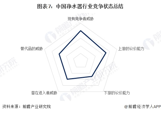 从五力竞争模型角度分析,目前,我国净水器行业供给企业数量较多,行业毛利率较高,同时进入门槛一般;在下游议价方面,家庭消费是主要业务场景,议价能力较低;净水器发展前景良好,吸引新进入企业参与布局。