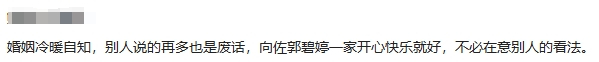11月1日,向佐在直播中回应“郭碧婷不是嫁给向佐而是嫁给向太”的说法:别人怎么看无所谓,我妈妈很疼碧婷是真的,碧婷很照顾爸爸妈妈也是真的,我跟碧婷跟小孩很幸福也是真的。