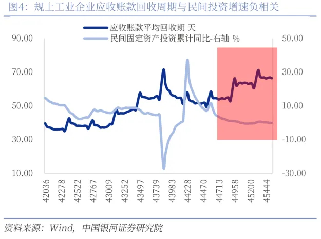 其次,新一轮化债将缓解和改善市场流动性,尤其是降低To G企业应收账款压力,有助于提振市场预期。在10月12日发布会上,也提及过去安排的化债限额在支持地方化解存量隐性债务的同时,还有消化政府拖欠企业账款。我们注意到,企业应收账款的平均周期由2018年的47.4天大幅提升至2024年9月份的66.3天,与此同时民间固定资产完成额的累计增速由8.73%持续降至-0.2%。