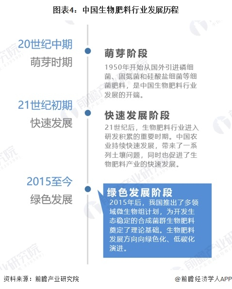 20世纪中期,中国开始从国外引进磷细菌、固氮菌和硅酸盐细菌等细菌肥料,是中国生物肥料行业发展的开端。21世纪初期,中国农业持续快速发展,带来了一系列土壤问题,同时也促进了生物肥料产业的快速发展。