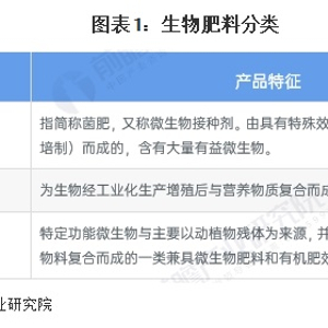 生物肥料,又称微生物肥料,是指以微生物的生命活动为核心,使农作物获得特定的肥料效应的一类肥料制品,是生产绿色食品的重要原料。生物肥料在培肥地力,提高化肥利用率,抑制农作物对硝态氮、重金属、农药的吸收,净化和修复土壤,降低农作物病害发生,以及提高农作物产品品质和食品安全等方面表现出了不可替代的作用。目前涉及微生物的肥料产品分为三大类,分别是微生物菌剂、复合微生物肥料以及生物有机肥。