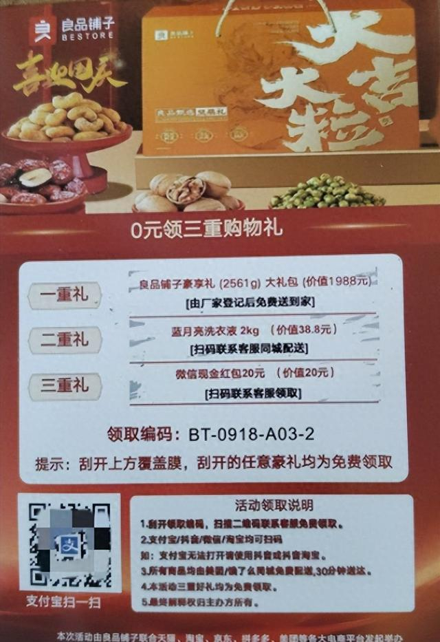 您的韵达快递已到,请凭提货码6-190xx来取。”10月28日,家住成都市武侯区的李女士收到这样一条取件短信。“我还以为是网购到货,结果竟然是领奖券。”李女士拆开快递一看,里面只有一个信封,里面装了一封感谢信和一张刮刮卡。刮开奖品明细,“免费奖品”包括良品铺子大礼包、其它品牌产品以及现金红包等,卡片上标注礼品价值上千元。可是要想获得奖品,消费者需要按照卡片或信函上的指示扫描二维码或联系客服,并提供个人信息。