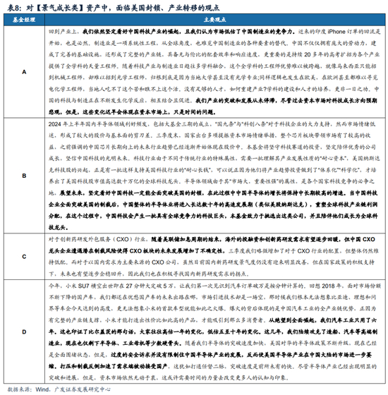 6.而对于市场担心的美国封锁、产业转移等,(1)基金经理提到市场低估了中国制造业的竞争力,中国的科技与制造正在不断发生化学反应。例如部分基金经理提到“近来的印度iPhone订单的回流是开始,制造业是一项系统性工程,从全球角度,也难觅中国制造业的各种要素的替代。中国不仅仅拥有庞大的劳动力,建成了完善的基础设施,还形成了完整的产业链,具备无与伦比的配套效率和响应速度,更重要的是持续20多年的高考扩招为各个产业提供了全学科的天量工程师。随着科技产业与制造业日趋往多学科融合,这个全学科的工程师优势难以被跨越。”(2)过度的安全诉求并没有限制住中国半导体产业的发展,反而使美国半导体产业在中国大陆的市场进一步萎缩,打压和制裁反倒加速了需求端被动接受国产。从绝望到全面崛起,汽车工业只用了六年。这也印证了比尔盖茨的那句话,大家往往高估一年的变化,低估五至十年的变化。这几年,我们陆续攻克了造船、汽车等高端制造业,现在也仅剩下半导体、工业母机等少数硬骨头。