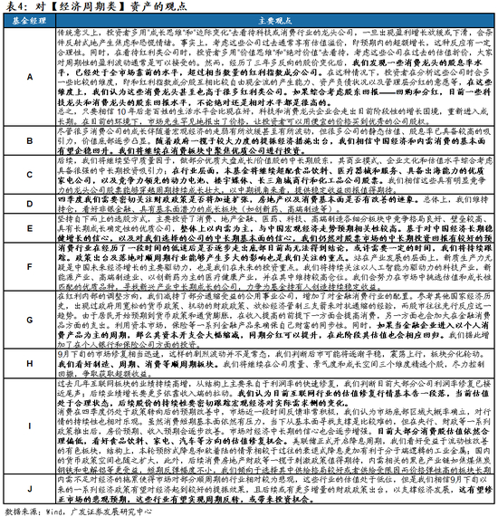 1.基金经理对经济周期类资产存在分歧,看好经济周期类资产的基金经理主要有三种观点: