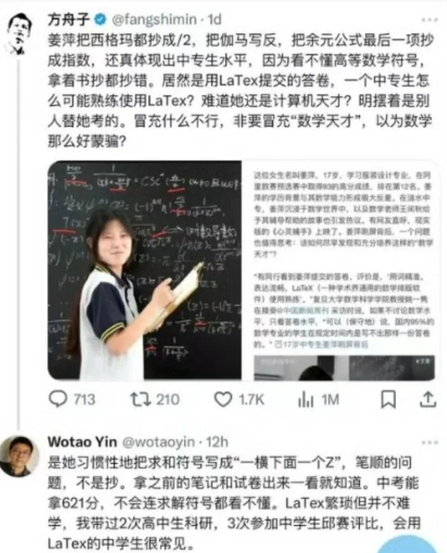 结果姜萍资质实在太普通,在拍摄的短片中,把西格玛都写成/2,把伽马写反,连高等数学符号都写错了,这个所谓的数学天才,一下子就露出了马脚。