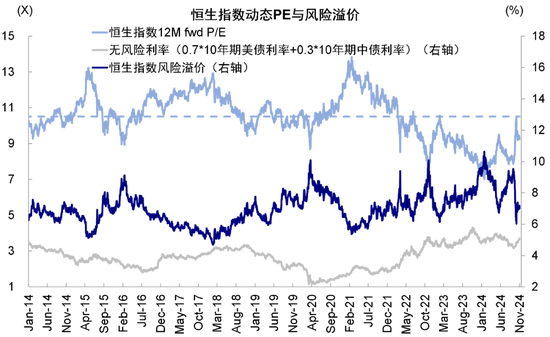 图表:恒生指数风险溢价近期维持在7.0%附近,相当于今年5月市场反弹时水平