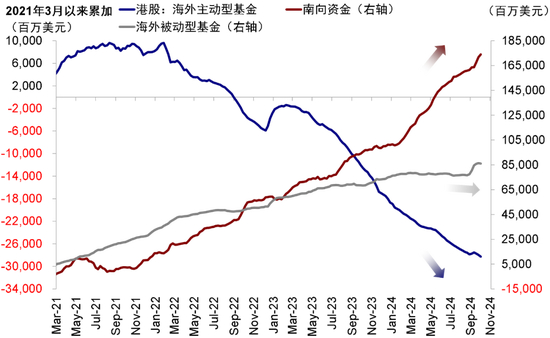 图表:海外主动资金加速流出,被动资金同样转为流出