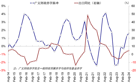 图表:广义财政赤字脉冲衡量,从历史经验上看,出口弱则政策强