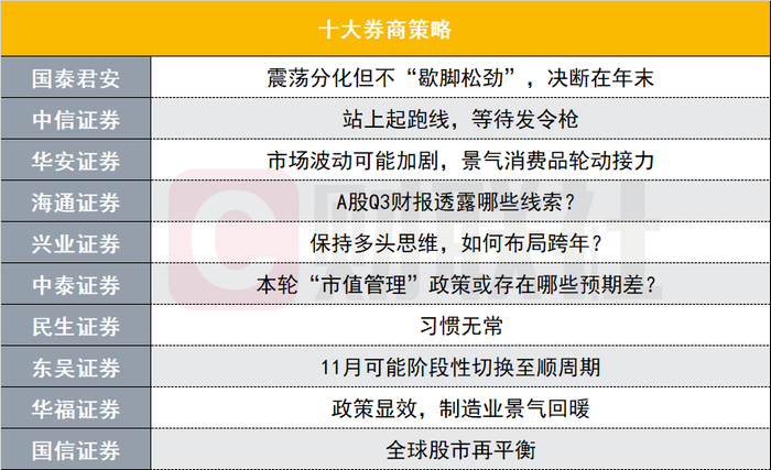 十大券商策略:股指震荡分化,决断在年末?还是提前布局跨年行情?