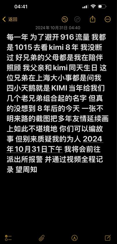 10月31日凌晨4时41分,朱桢又在抖音发文称“可以编故事,但别来质疑我的为人”,并称将于10月31日下午报警。