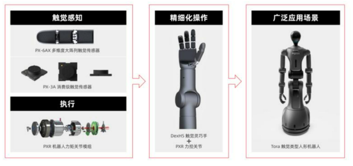 2023年8月,帕西尼感知科技发布行业首款以多维度多阵列触觉感知为核心的人形机器人Tora。