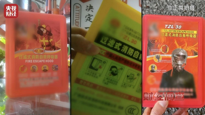总台记者在多地进行调查后发现,商家售卖的“非标”过滤式消防自救呼吸器散发刺鼻气味,与“国标”产品对比差异显著。