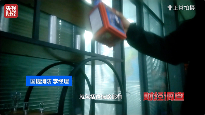 而在湖南月湖大市场的安腾消防,周经理向总台记者透露,他们的“非标”产品外观上均有“国标”产品的标识,应付抽检时会用真正的符合标准的国标产品送检。
