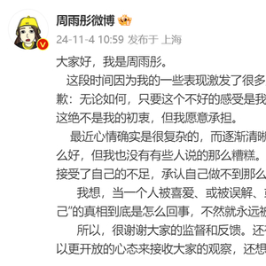 周雨彤还在微博里写道:“我会以更开放的心态来接收大家的观察。”