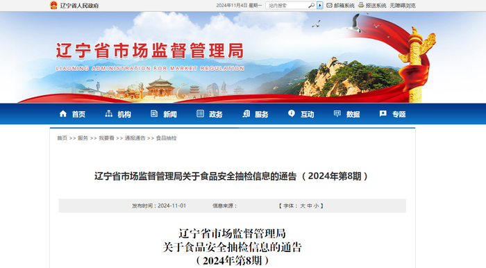 辽宁省市场监督管理局关于食品安全抽检信息的通告 (2024年第8期)