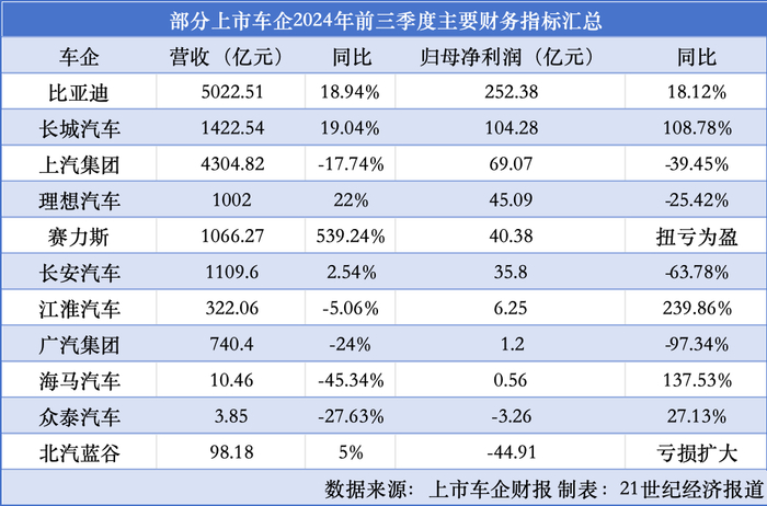 “价格战”下行业陷入利润低点:车企前三季度业绩冰火两重天