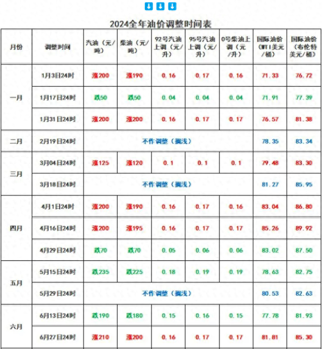2024年油价涨跌情形