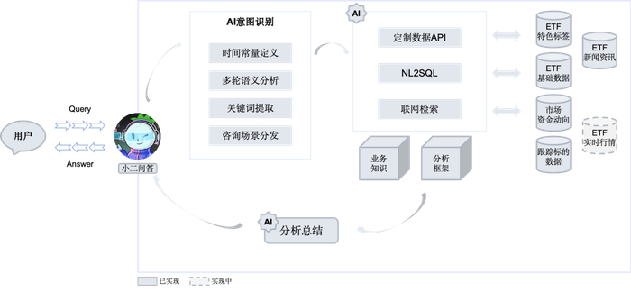 朝阳永续还关注到了用户输入的检索内容不严谨、检索效率不高、覆盖度不够等问题。比如,经常遇到金融实体容易混淆或者不能识别;隐含时间条件没有明确说明;意图不清等。面对这些情况,FinGo深度研究如何通过用户问题精准理解,以及通过多路召回等技术能力,实现了:在问题中识别金融主体(股票、基金、机构等)、时间条件、明确问题意图等,并结合 RAG 与 NL2SQL 等技术,从知识库、数据库中精准检索信息。