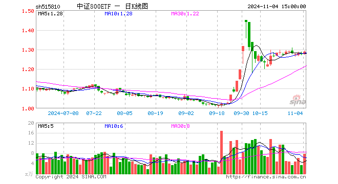 11月4日中证800ETF(515810)份额增加300.00万份,最新份额1.98亿份,最新规模2.55亿元