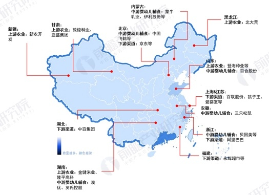 从代表性企业分布来看,婴幼儿辅食产业代表性企业主要分布湖南、浙江、内蒙古、北京等省市。此外,上海、江苏、山东等地亦有产业链代表性上市公司。