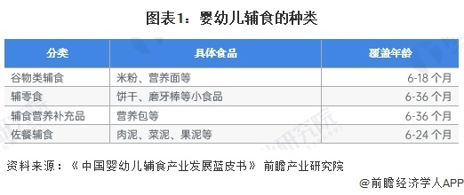 婴幼儿辅食的消费人群覆盖6-36个月的人群,在不同年龄段,对辅食的消费差异较大。目前,婴幼儿辅食行业分类主要包括谷物类辅食、辅零食、辅食营养补充品、佐餐辅食四类。