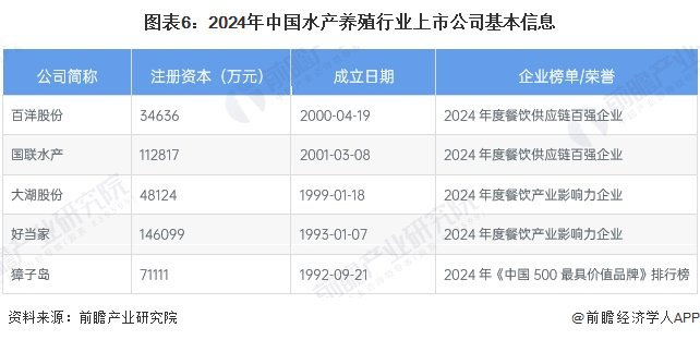 2、水产养殖行业上市公司基本信息对比
