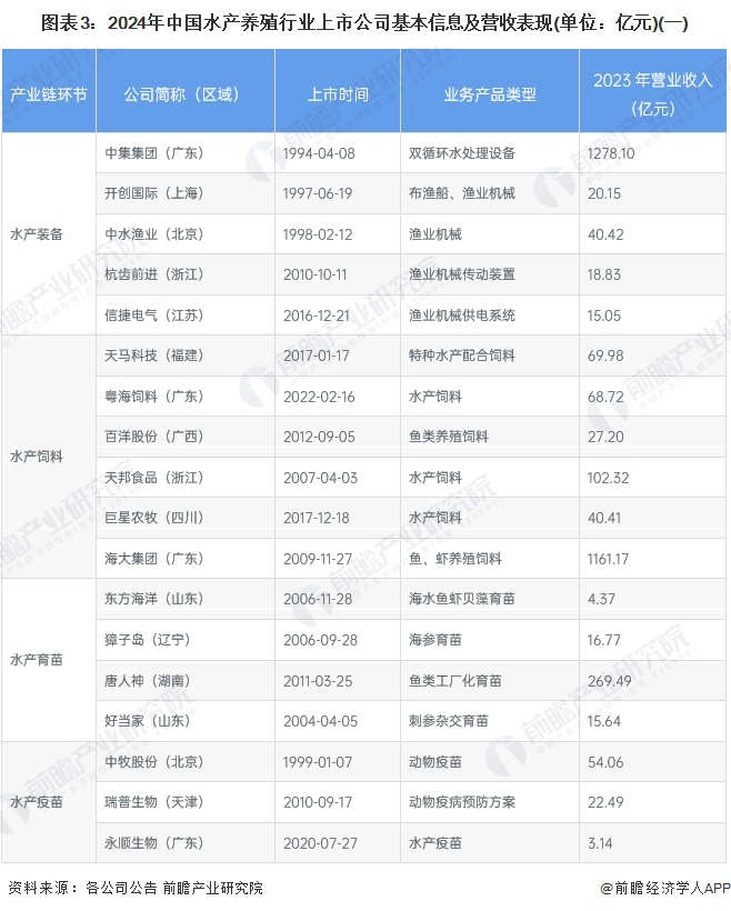 1、水产养殖产业上市公司汇总