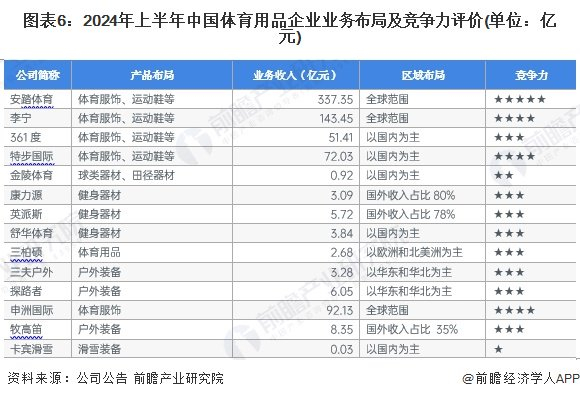本文核心数据:体育用品行业竞争梯队;体育用品行业企业布局等