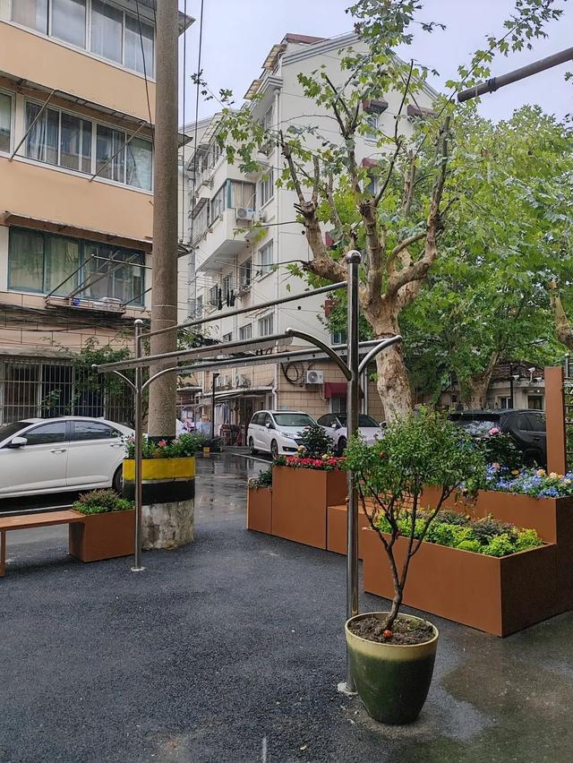 为了提高居民对绿植的有序养植意识,以及公共绿化环境的审美意识,居民区将原先放置在空间里的、居民自己栽种的绿植依旧布置在花园的各个角落,让移动绿植和景观绿植有机统一,也让共建共治共享的理念深入人心。
