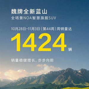 长城魏牌新能源今日宣布,其全新车型蓝山在10月28日至11月3日(第44周)的周销量达到1424辆,成功登顶30万级新能源大六座SUV周销量榜首。该车型自8月21日上市以来,售价区间为29.98万至32.68万元人民币。