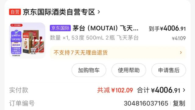 食悟留意到,前几天京东国际参加百亿补贴的海外版飞天茅台两瓶装售价4006.91元,是不限量的,这也意味着这批拿来促销的“海归茅台”,货源是极其充足的。