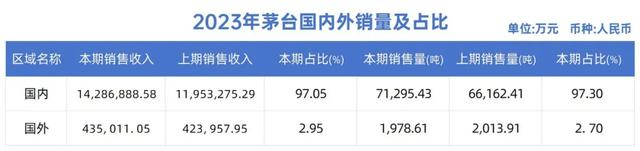 食悟查询了贵州茅台财报,2023年茅台海外销售收入43.5亿元,占总收入的2.95%;海外销量1978.61吨,占总销量的2.7%。2023年,茅台海外经销商数量共计106个。